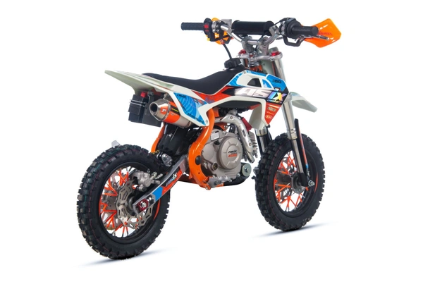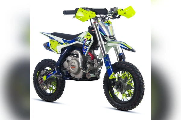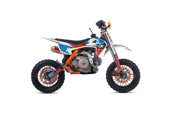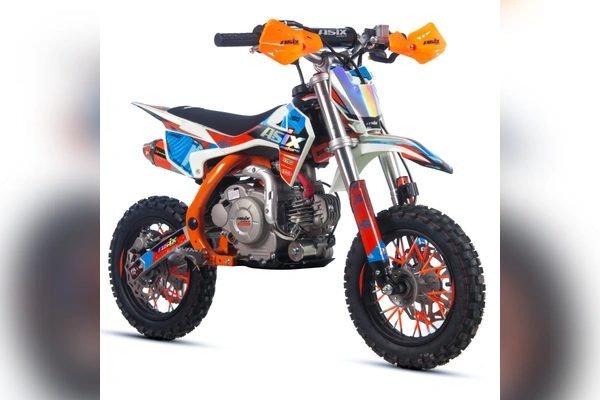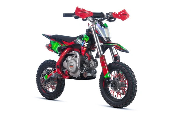 Mini cross ASIX DK60 odpalany z rozrusznika elektrycznego to pojazd z silnikiem czterosuwowym (4T) o pojemności 60cm3. Przeznaczony jest dla dzieci od 125cm wzrostu. Cross zestawiony na 10" kołach, wyposażony w hamulce hydrauliczne, handbary, regulację prędkości, licznik motogodzin oraz najnowszą okleinę holograficzną